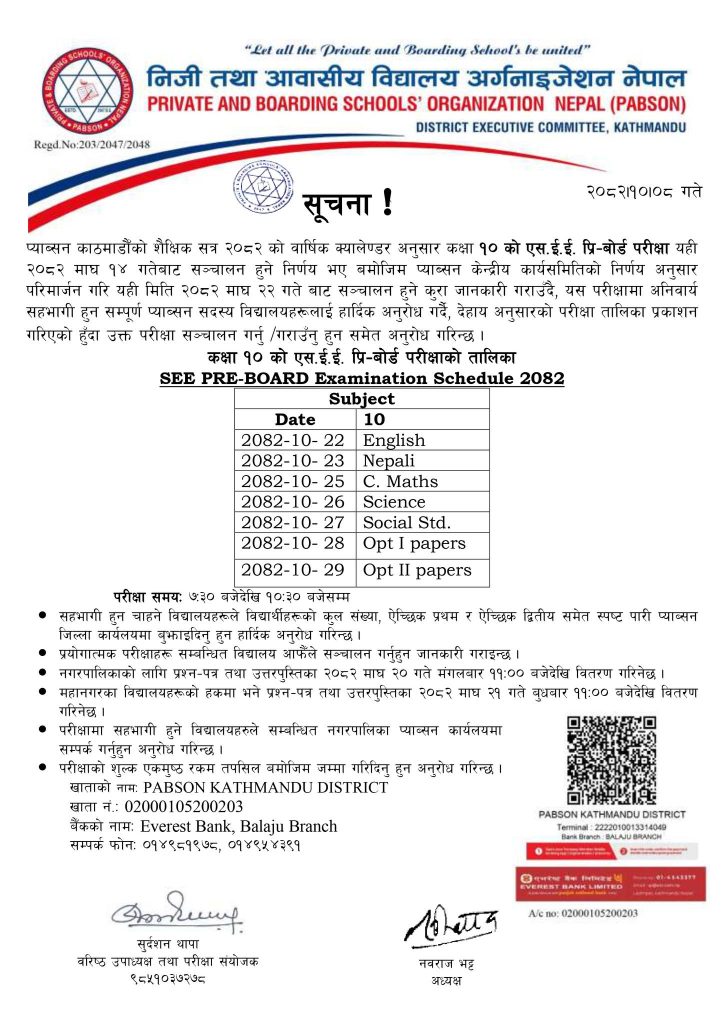 SEE Pre Board 2082 Routine Changed